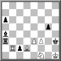 matt, 3....Kf5 4. L:f3 5. Sd6 matt, 2....b4 3. Sd6+ Kd5 4. L:f3+ Kc5 5. Sa4 matt bzw. 1....h5 2. Kg6 (dr. 3. K:h5 b5 4. Kg4 5. L:f3 matt), 2. ...b5 3. K:h5 b4 4. Kg4 b3 5. L:f3 matt 2....h4 3.Kg/h5 bel. 4. Kg4 5. L:f3 matt,